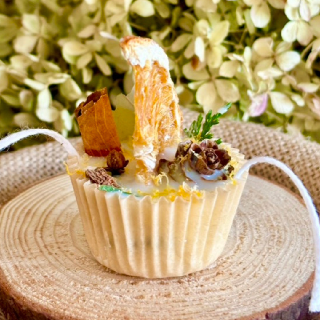 Scented with phthalate-free oils, fresh dried spices/herbs, dried fruit/flowers, coffee beans, evergreen, pine cones and other natural goodies, mostly hand collected on site and from local farms.