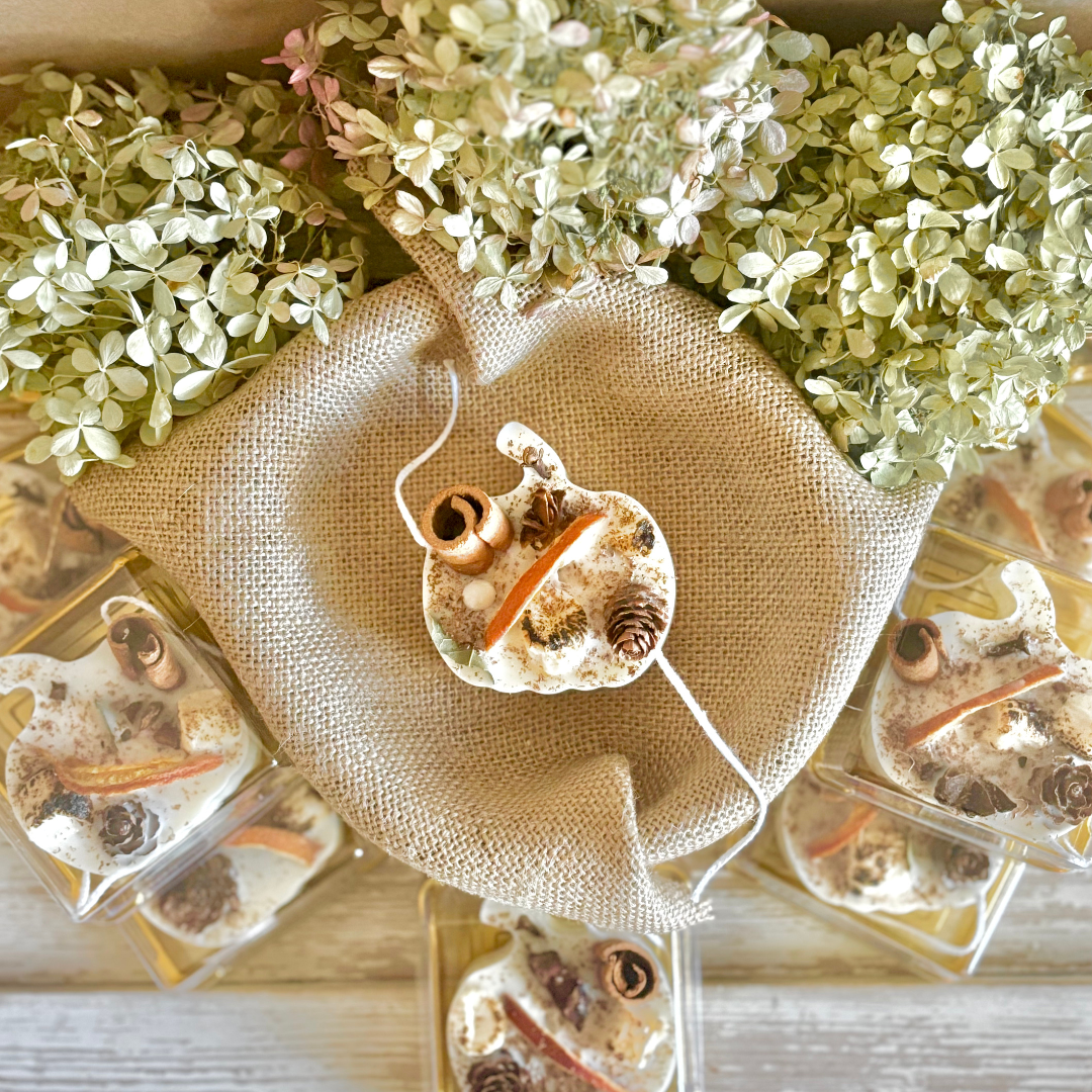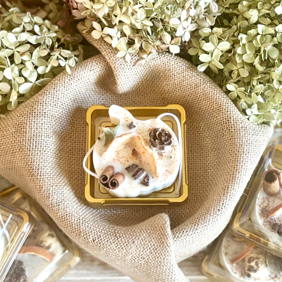 AUTUMN APPLE: soy wax/ cotton wick/ cinnamon sticks/ baby pine cones/ evergreen/ star anise/ clove/ real dried apples / bay leaf / signature scent