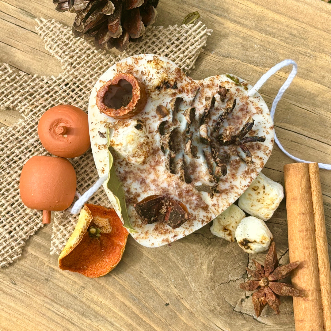 Our classic fire starter recipe now offered in the Pumpkin Shape with real dried fruits , cinnamon sticks, pine cone, star anise, bay leaf ,fresh evergreen & toasted marshmallows, spiced apples, pears and other delicious smelling ingredients , depending on what scent you choose.